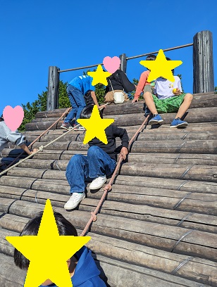 頂上にあるアスレチックではターザンロープがあったり大きな滑り台があり
