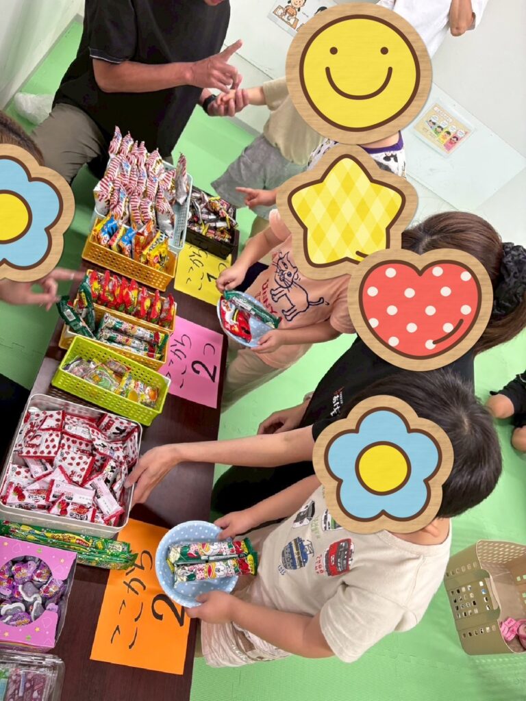 おやつタイムではあけぼし駄菓子屋が開催され好きなお菓子を選んで食べました♪