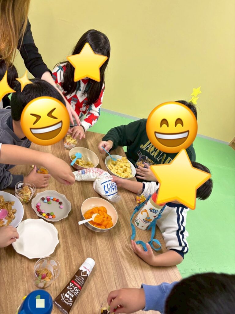 ゲームが終わるとみんなでカップケーキパフェ作りをしました!