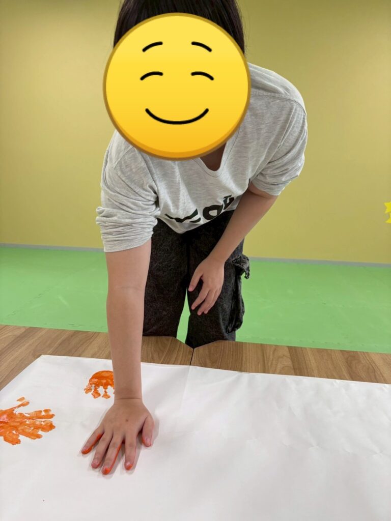 手のひらに絵の具を塗ると、くすぐったい表情をしていた子どもたちでした🥰🎵